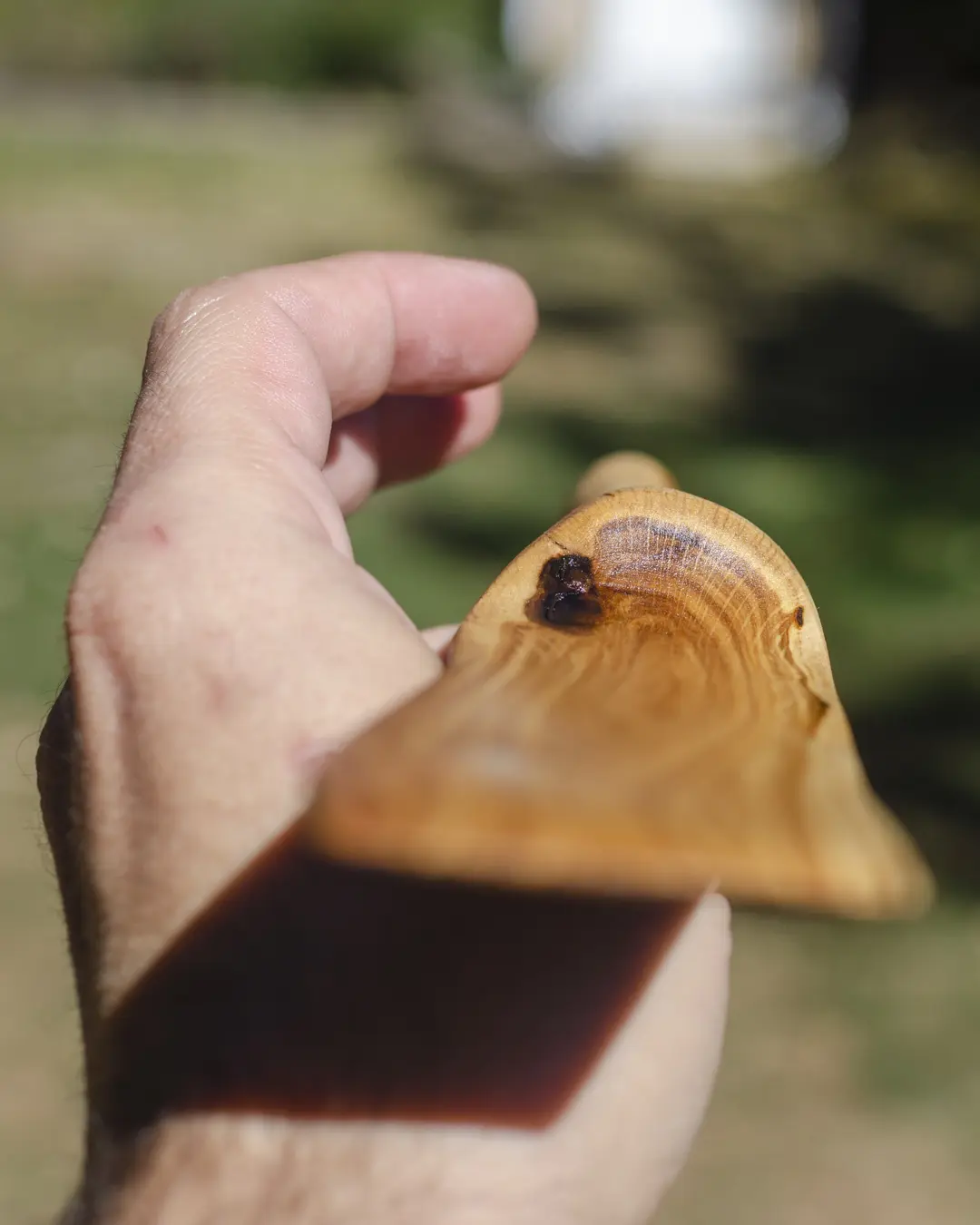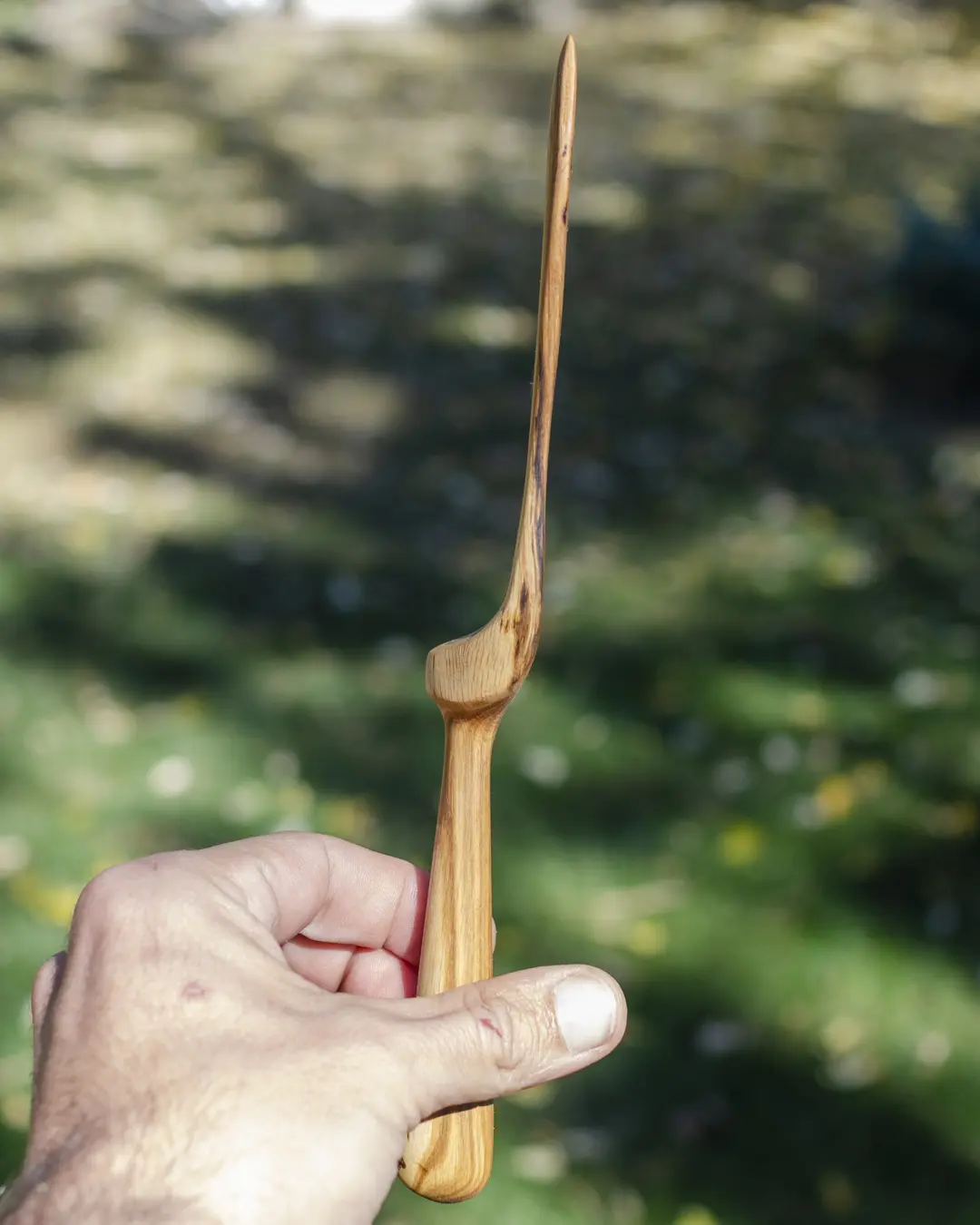 • Hand-carved with an organic, flowing handle design